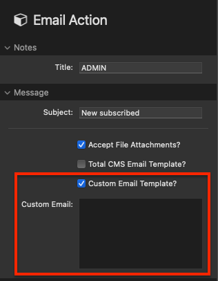 IMPORTANT: Obviously, for the form to work properly, you'll have to fill in all the fields of the Email Action child stacks, not only the Custom Email text area.